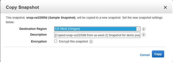 The following create-snapshot-copy-grant example creates a snapshot copy grant and encrypts copied snapshots in a destination AWS Region.