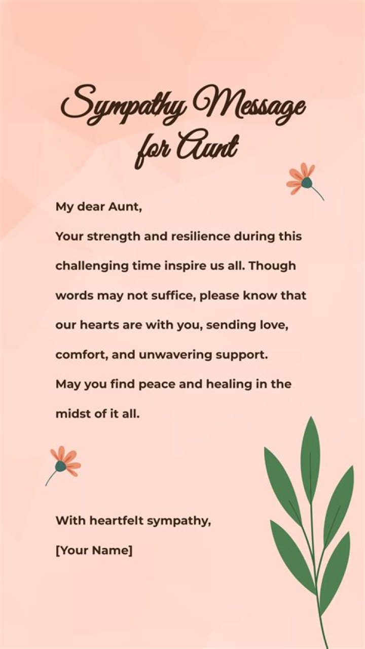 Remember, the most important aspect of a loss of aunt sympathy message is to convey your heartfelt condolences and offer support during this difficult time.