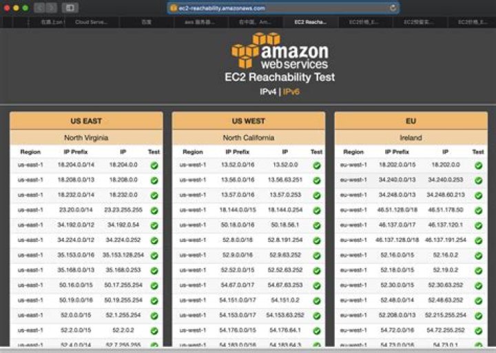| Region | IP Prefix | IP | Test |