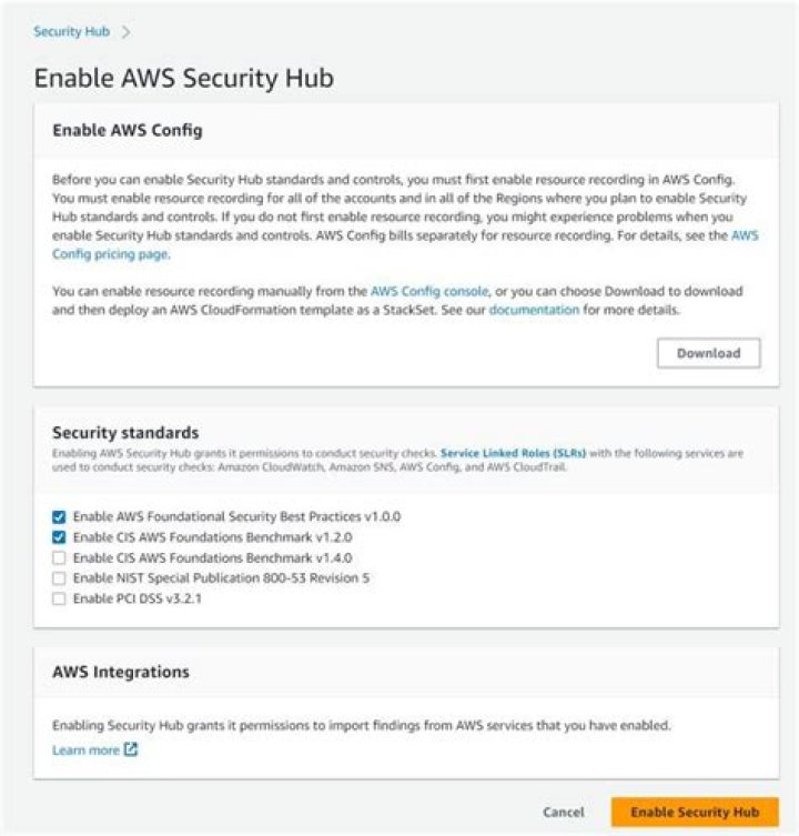 To enable AWS Security Hub