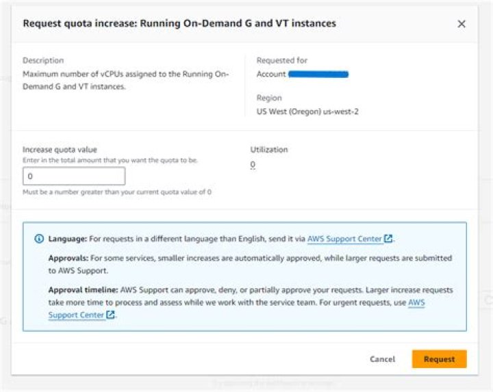 To request a service quota increase